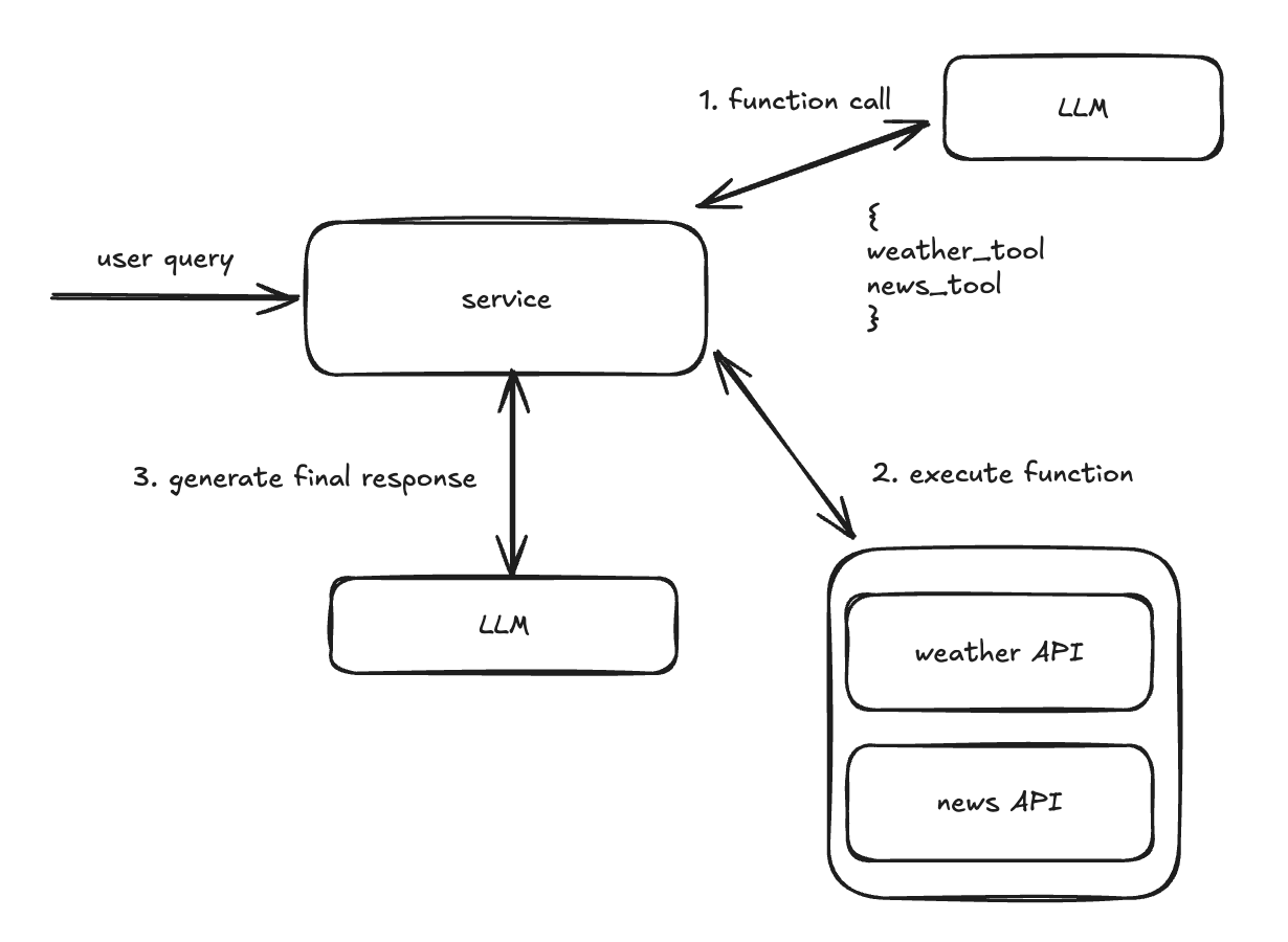 function calling to allow the AI to call functions to get the latest information. Information such as news, weather etc...